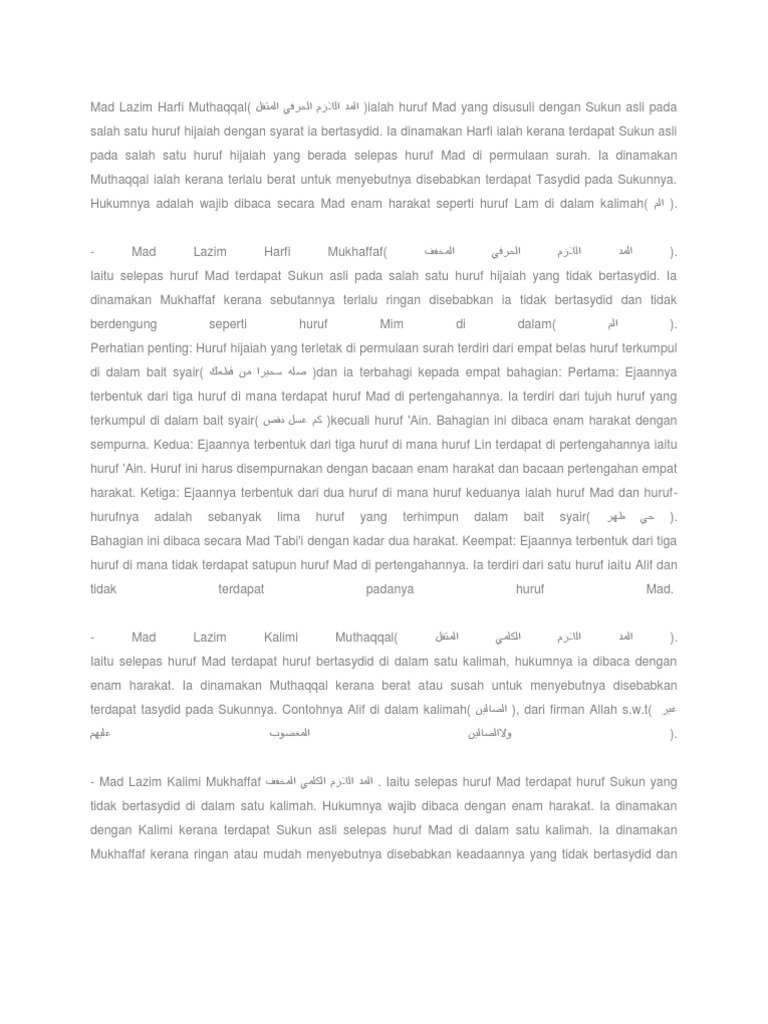 Mad yang berlaku apabila huruf mad bertemu dengan sukun asli dalam satu huruf. Salah satu huruf hijaiah dengan syarat ia bertasydid. Pelajaran tajwid mad lazim harfi (mukhaffaf / muthaqqal) 1) mad lazim harfi mukhaffaf. Untuk membezakan hukum samaada mad lazim harfi mukhaffaf atau mad lazim harfi muthaqqal proses pengejaan huruf perlu dilakukan. Mad lazim harfi muthaqqal (youjank) is on facebook.